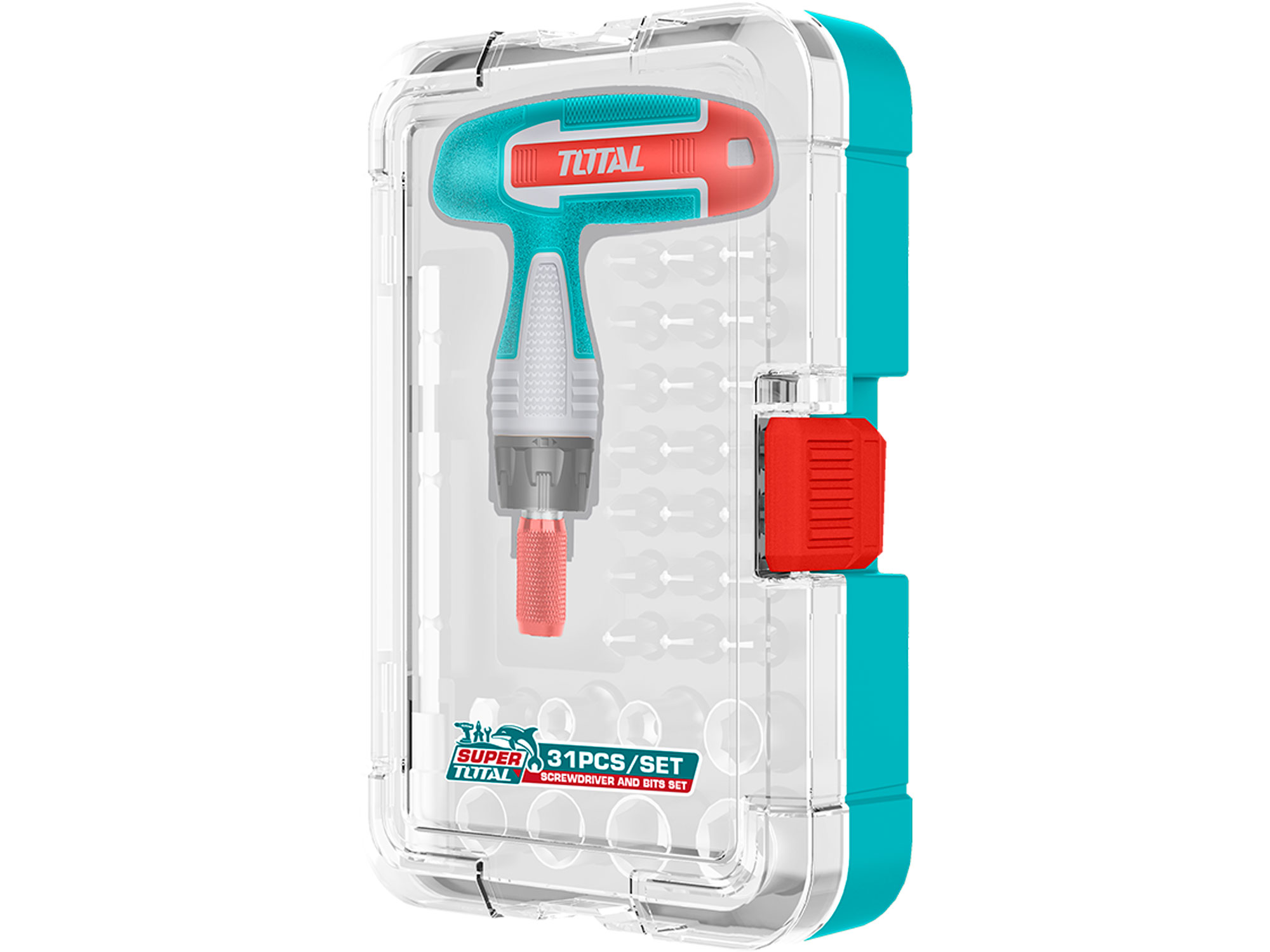 Produktinformation "Ratschenschraubendreher mit T-Griff und Spitzen, Satz à 31 Stück, CrV"