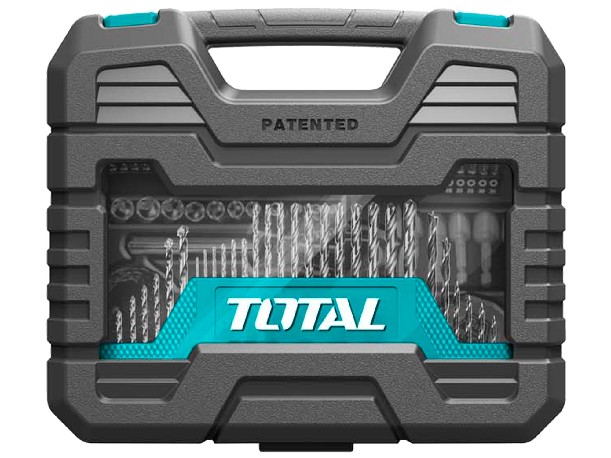 1 stk. træbor 3 mm, 4 mm, 5 mm, 6 mm, 8 mm, 10 mm, 1 stk. hulsav 32 mm, 38 mm, 44 mm, 54 mm, 1 stk. skruetrækkerhåndtag, 1 stk. skruetrækkerforlænger 50 mm, 1 stk. skruetrækkerforlænger 100 mm, 1 stk. magnetisk bitholder, 1 stk. bitholder med hurtigskiftfunktion, 1 stk. fleksibel forlænger 150 mm, 1 stk. adapter til hulsave, 8 stk. topnøgler 5 mm, 6 mm, 7 mm, 8 mm, 9 mm, 10 mm, 11 mm, 12 mm, 1 stk. borepatronnøgle, 1 stk. kuffert.