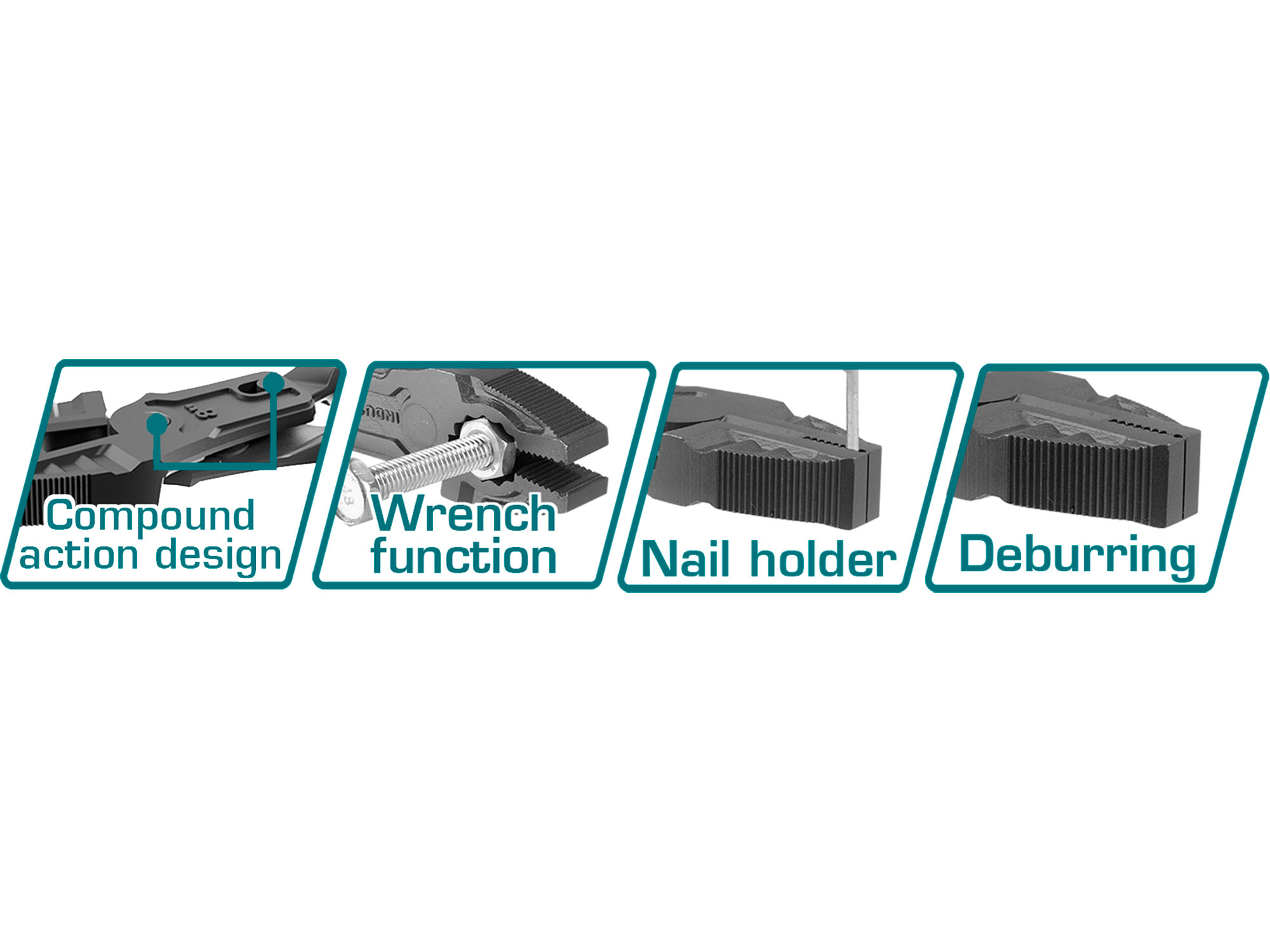 Desuden har tangen en sømholderfunktion, en skruenøglefunktion og en afgratningsfunktion. Det gør den til et alsidigt værktøj, der er velegnet til en lang række opgaver.
