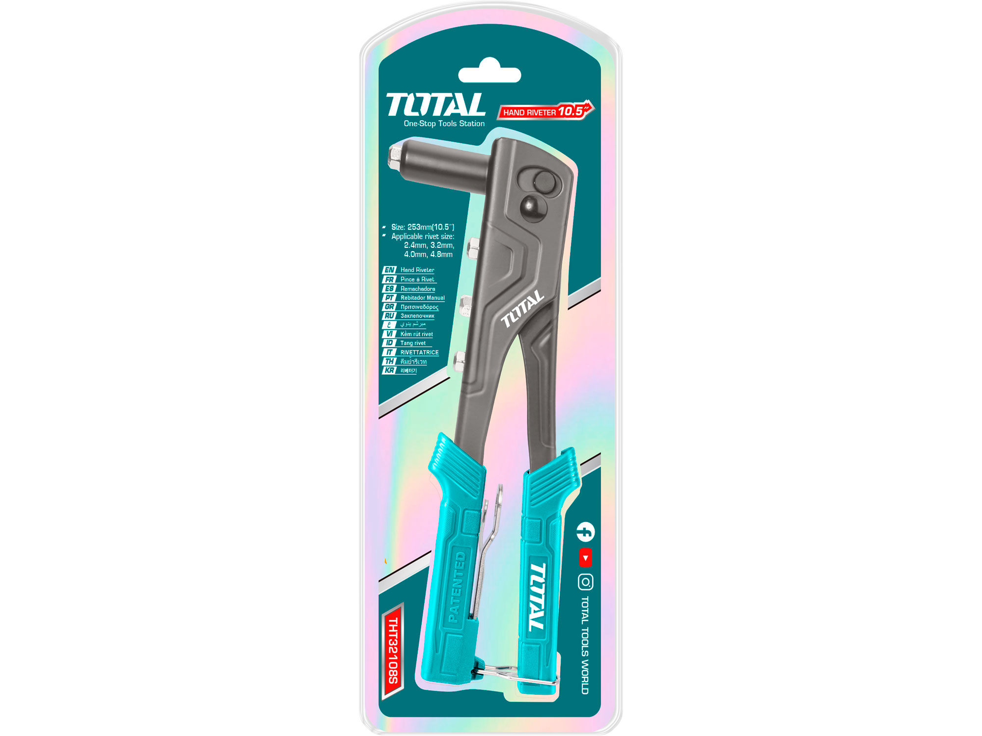 - Med sin længde på 270 mm giver den god gearing til at fjerne selv tætsiddende nitter uden store anstrengelser. - Nittetangen er velegnet til forskellige nittestørrelser, bl.a. 2,4 mm, 3,2 mm, 4 mm og 4,8 mm. - Den har et skridsikkert håndtag, som giver et sikkert greb under arbejdet. - Tangen er ideel til håndværkere og gør-det-selv-folk, der jævnligt arbejder med nitter. - Den er let og kompakt, hvilket gør den ideel til mobil brug. - Nittetangen er nem at bruge og sparer tid og kræfter i forhold til manuel nitning. - Den er velegnet til en række forskellige materialer, herunder metal, plast og læder. Total - Med nittetangen fra kan du sætte eller fjerne dine nitter præcist og effektivt. Fabrikant