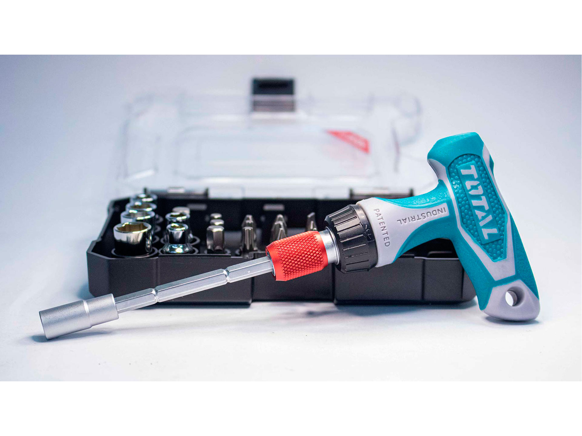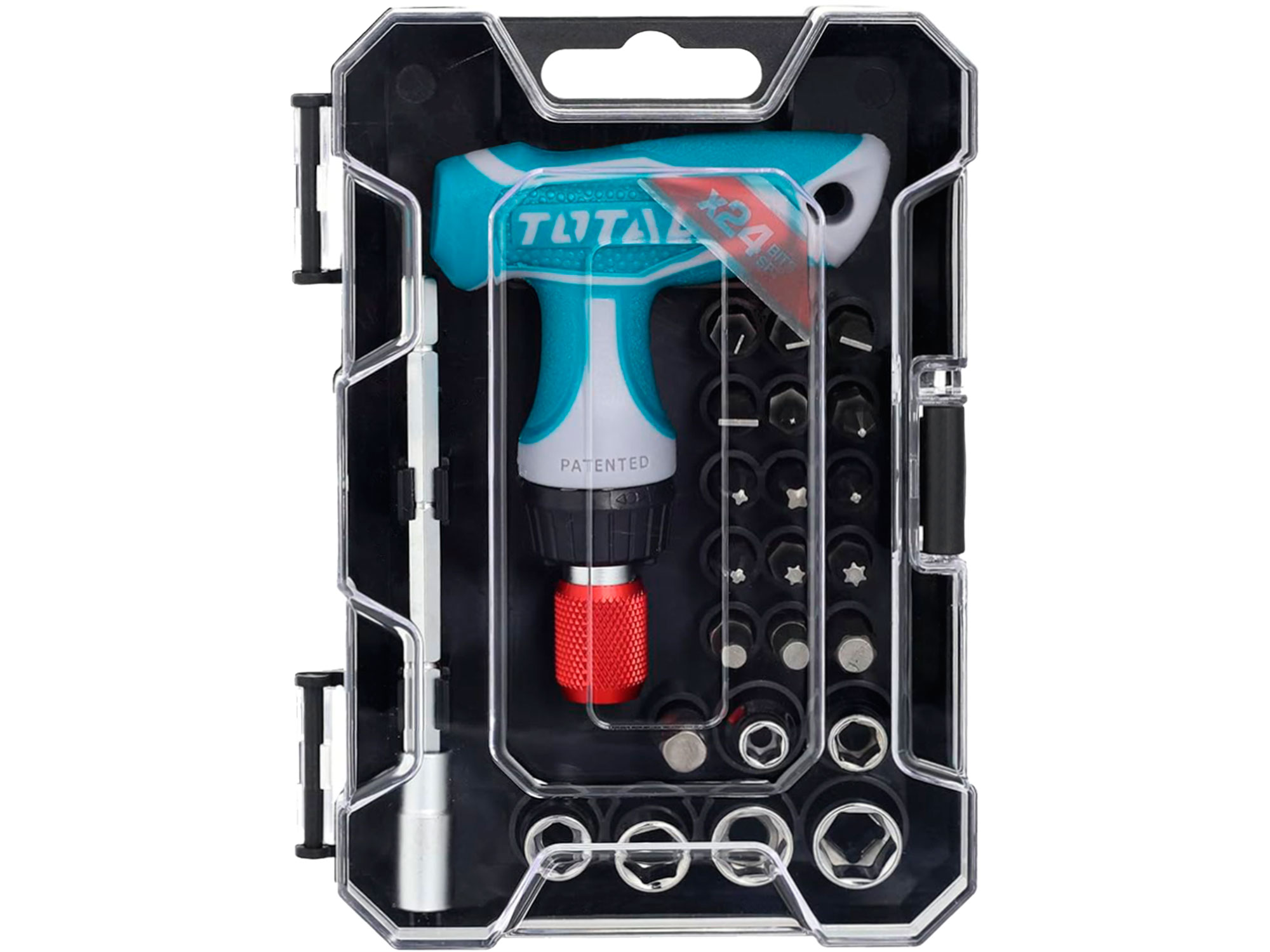 Total Skralde-skruetrækker med T-håndtag og spidser, sæt med 24, CrV