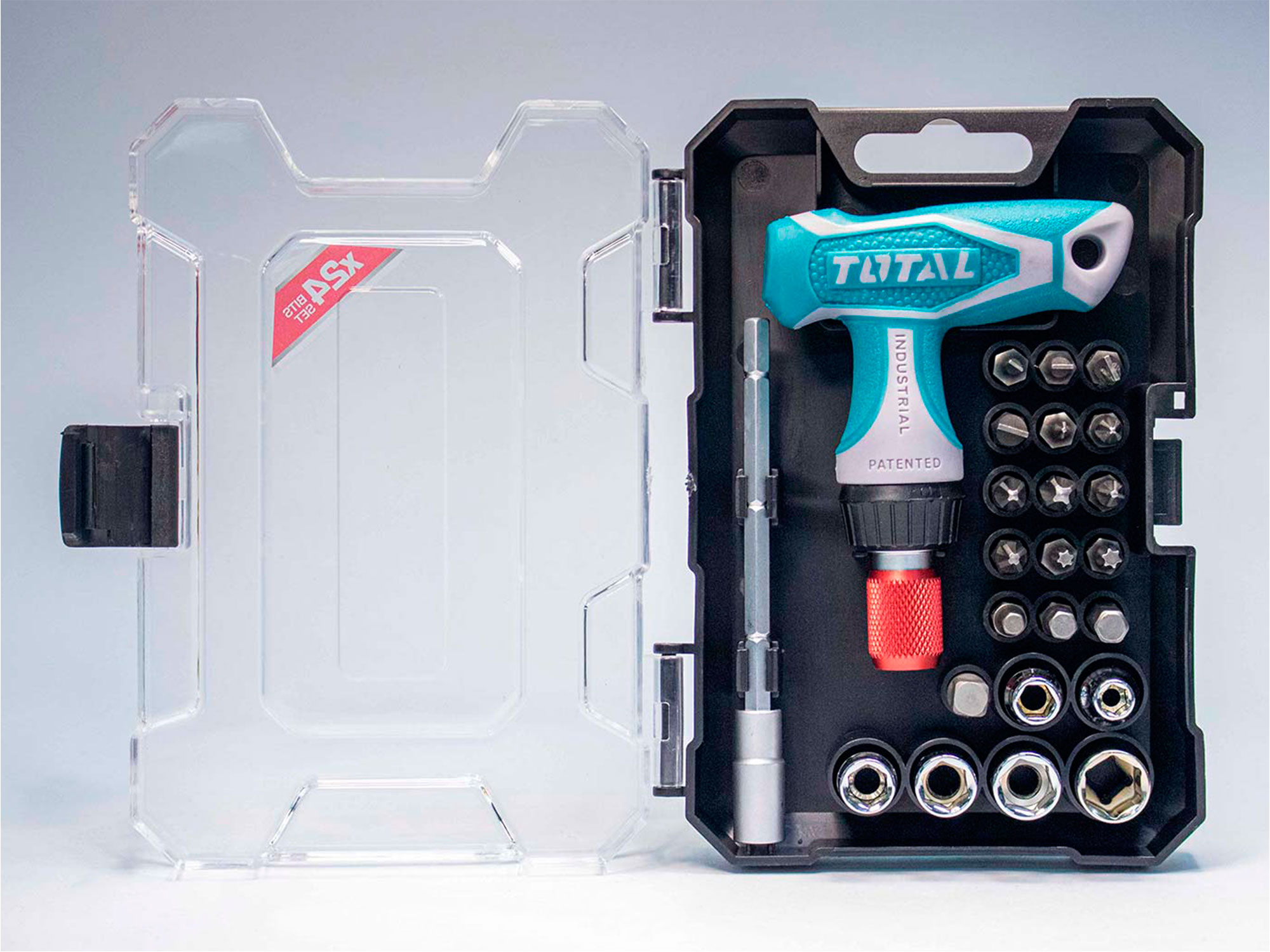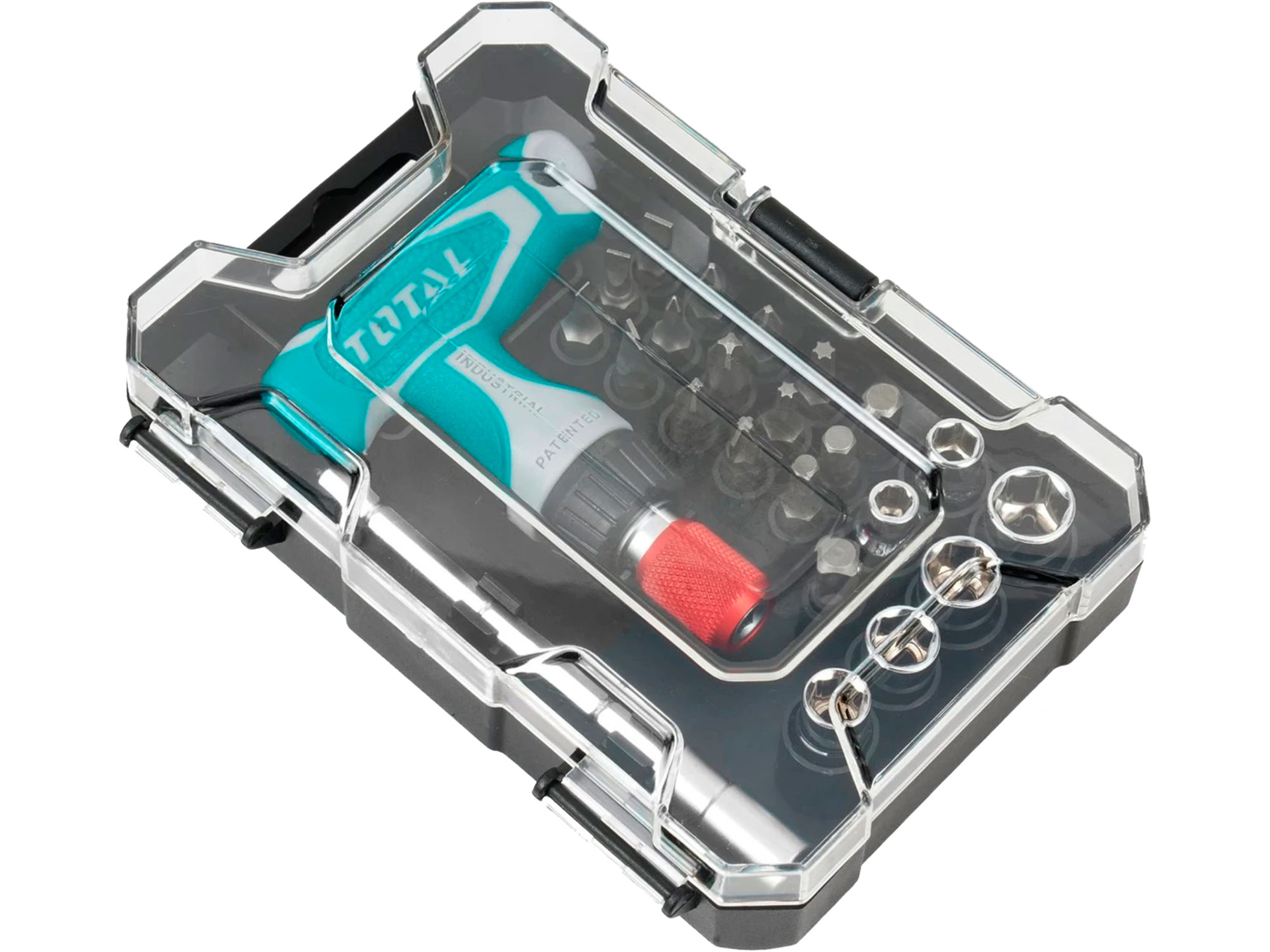 Den medfølgende TOTAL-designæske er ikke kun praktisk til opbevaring af sættet, men gør det også til en god gave til enhver gør-det-selv-entusiast. Kassen er robust og kompakt, så sættet er nemt at transportere og opbevare.