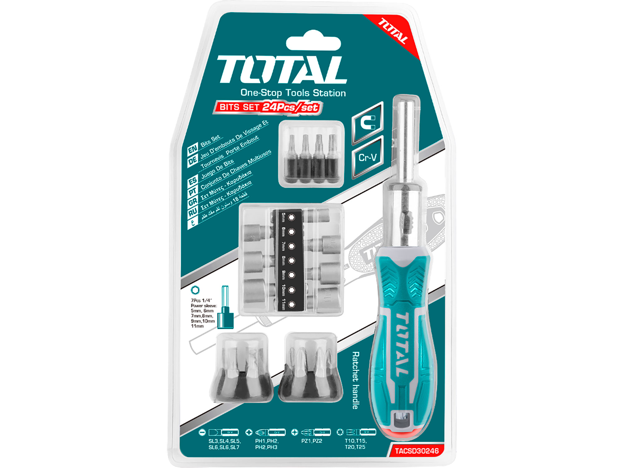 Total Skralde-skruetrækkere med spidser, sæt med 24 stk.