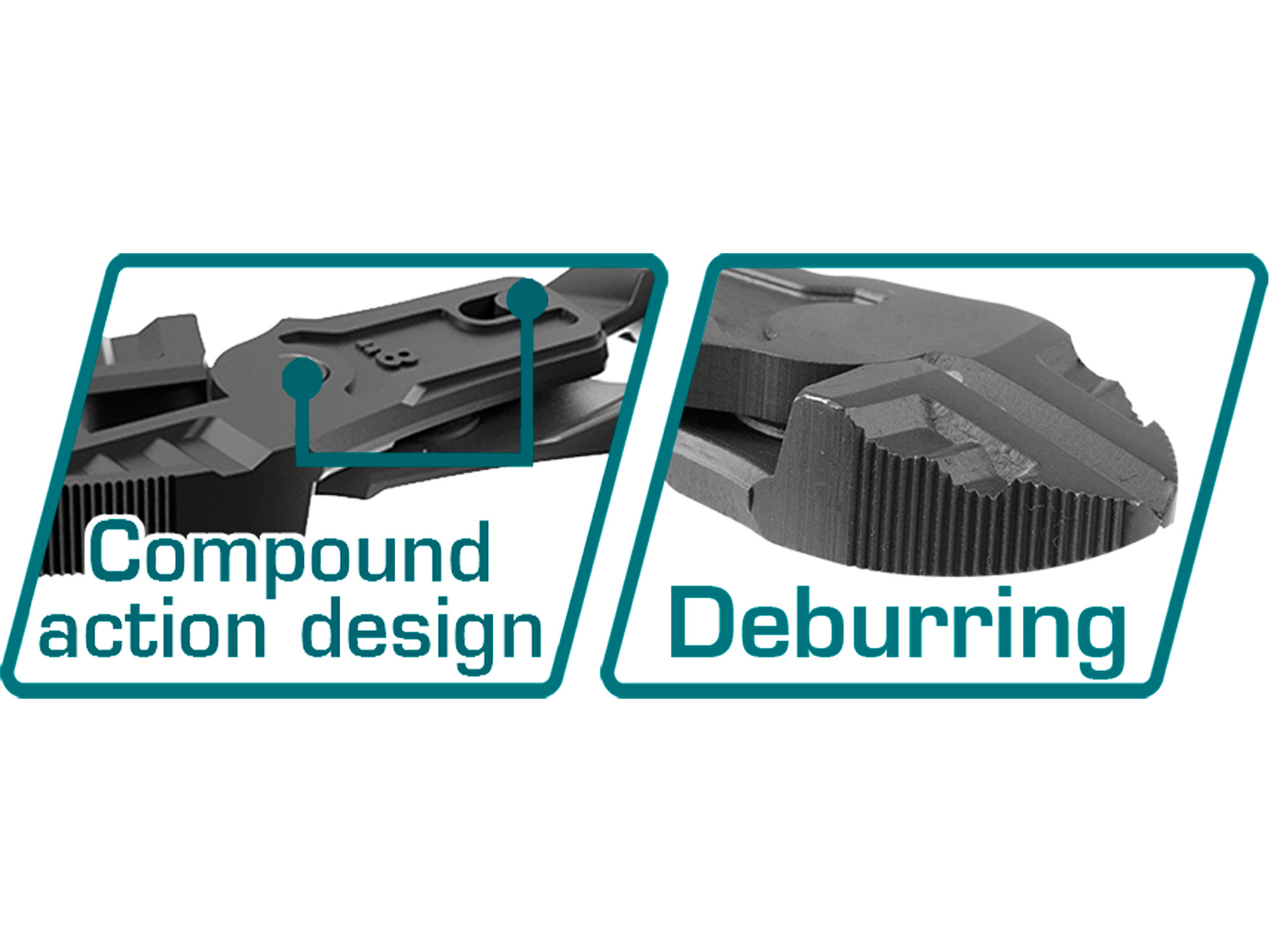 - Med en størrelse på 230 mm er denne robuste tang et uundværligt værktøj for enhver håndværker - Takket være sidegearet er den særlig nem at bruge og giver en energibesparelse på 65 % i forhold til konventionelle tænger - Fremstillet af kromvanadiumstål (Cr-V), et af de mest robuste og holdbare materialer på markedet - Overfladebehandling med teflonbelægning sikrer øget holdbarhed og forbedret ydeevne - Det trefarvede TPR-håndtag giver et fast greb og maksimal komfort under arbejdet - Den ekstra afgratningsfunktion gør denne tang til et alsidigt værktøj, der er velegnet til både at spalte og afgratte materialer - Pakket i en halv dobbeltblister for sikker transport og nem opbevaring Fabrikant